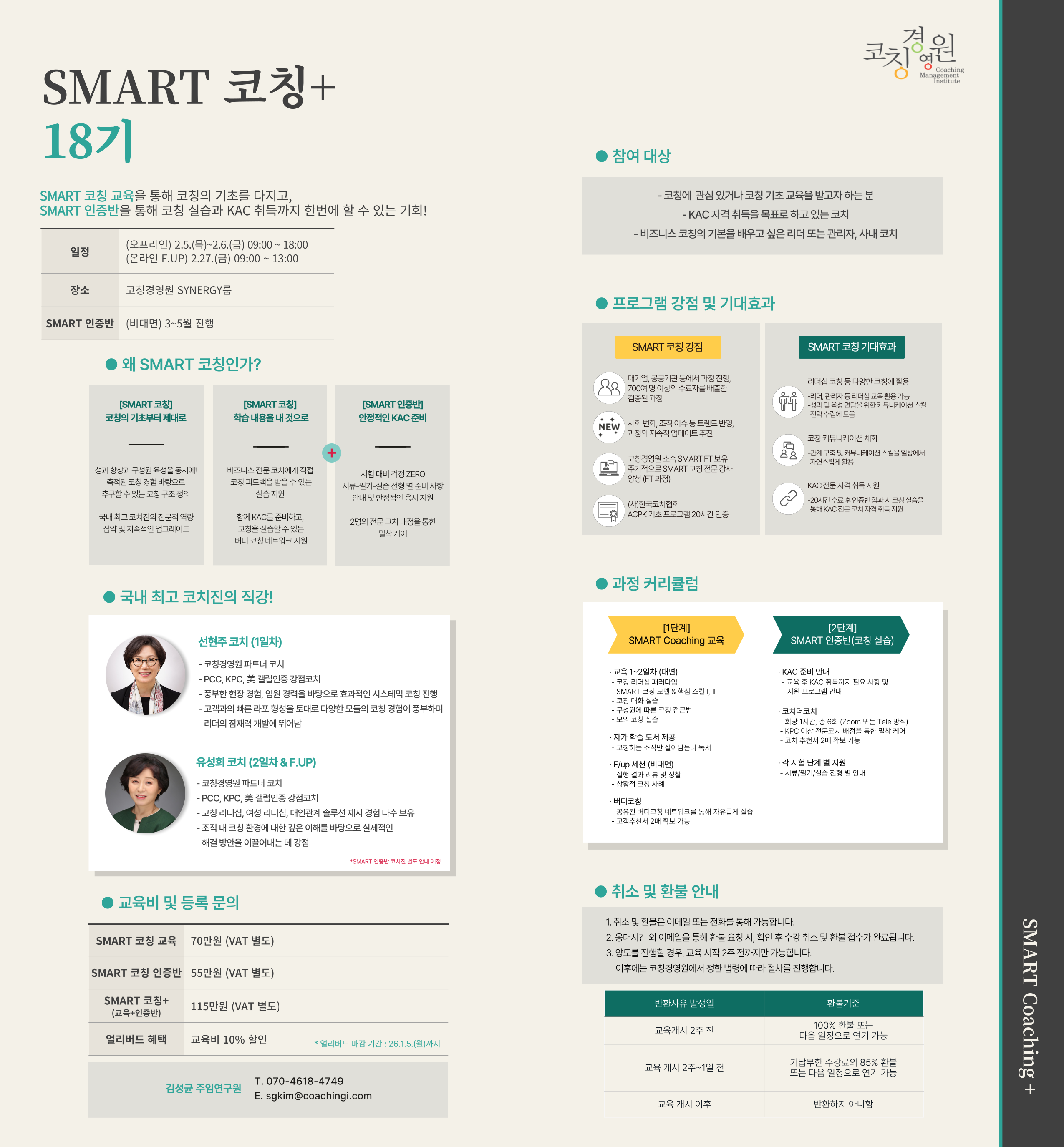 ※과정 문의, 신청 등은 코칭경영원 홈페이지 문의하기 게시판 또는 02-540-1655로 연락주시기 바랍니다.